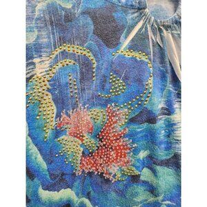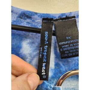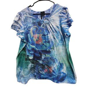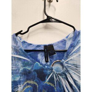Saint Tropez West Womens Top 1X Blue Artsy Embellished O Ring Neck Short Sleeve