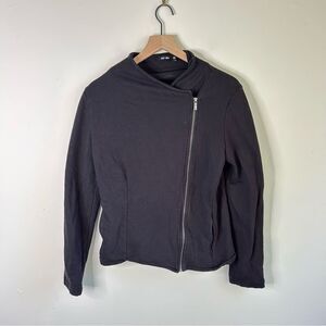 A soft cotton biker jacket that's instantly wearable. A comfortable cotton biker jacket made with the softest, certified organic cotton. We designed this with a relaxed shape that can be worn open or closed with an easy to use zipper. We make each style in our studios in Europe and finish every detail by hand. Wear it for work or weekends and pair it with jeans or pants.