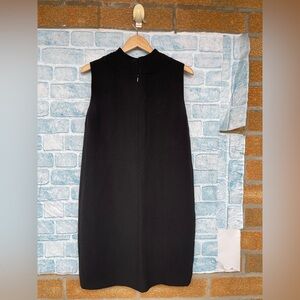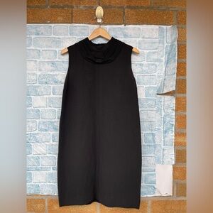 Elegant little black dress has details on neck , high neck closure in very good condition no size tags or material, measurements are posted for reference size 6/8