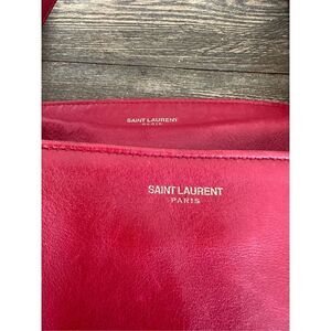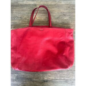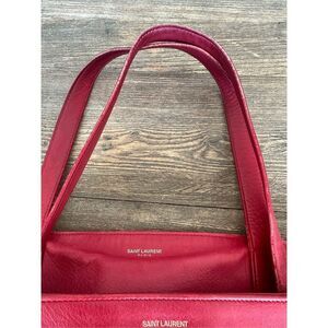 Saint Laurent Paris Red Leather & Suede Reversible tote bag with pouch - Authent