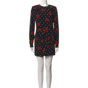 Saint Laurent Silk Floral Rose Dot Mini Dress Size 42