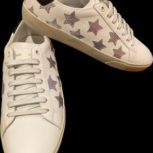 Saint Laurent Womans Silver Star Sneaker Size 38.5 / US 8.5
