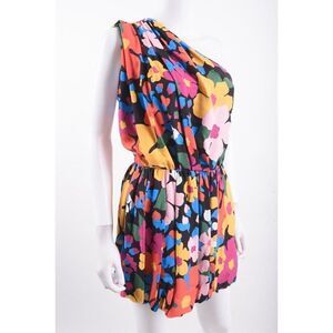 Saint Laurent Paris Womens Mini Dress Floral One-Shoulder Multicolor EU 38 US 6