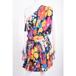 $2500 Saint Laurent Paris Womens Mini Dress Floral One-Shoulder Multicolor EU 38 US 6