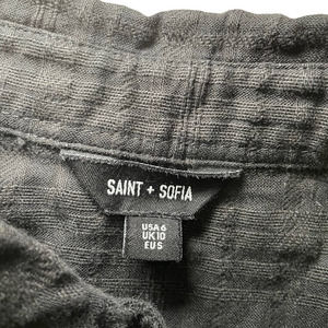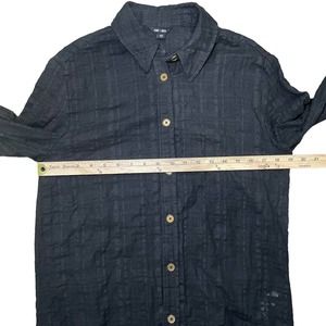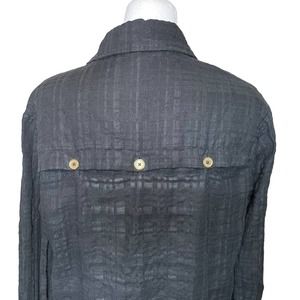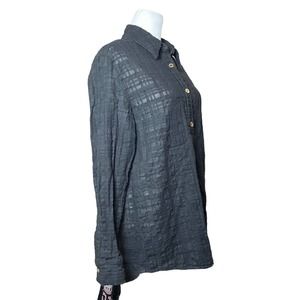 Saint+Sofia Black Burnout Button Down Shirt Long Sleeve Collared Casual Womens 6