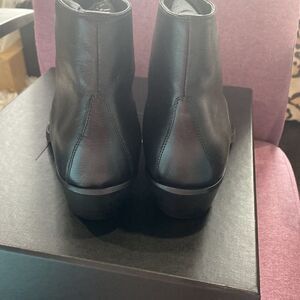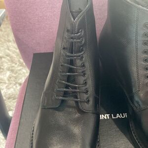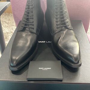 Brand new saint laurent men black leather boots. They are100% authentic. Comes with box, dust bags. The box is a little broken on the bottom but that does not affect the boot at all. Size is 40.5 which is a us 7.5 Please see chart size picture.
