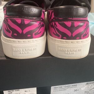This saint laurent pink and black sneakers were only used one time so the condition is very good. Size 36.5 and the come with box , dust bags and extra white laces. 100% authentic. Pet and smoke free home.