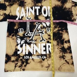 Saint or Sinner LA Bones Bleach Wash T-Shirt. No size tag. Please see photos for measurements.