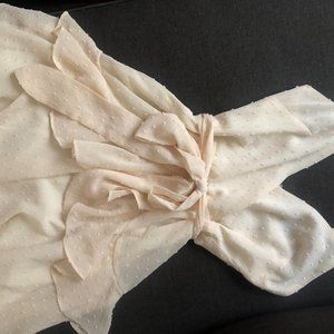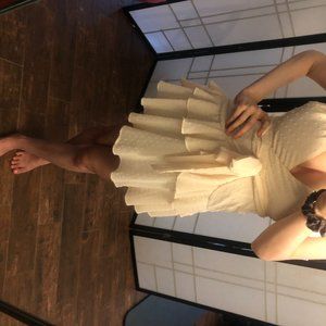 Creme/ off white dainty mini dress. Dotted Texture, bow tie front, ruffled. Great for Sunday Brunch! AU 6, or small. No tags but never worn out so in great condition.Red dress photo is same design just red color. I am selling the off white version.