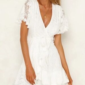 Saints And Secrets White Embellished V-Neck Flutter Sleeve Midi Dress