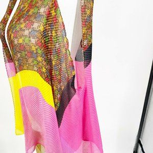 Saints Gil Womens Multicolor Asymmetrical Hem Open Front Sheer Cardigan Size OS