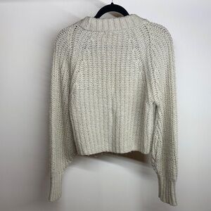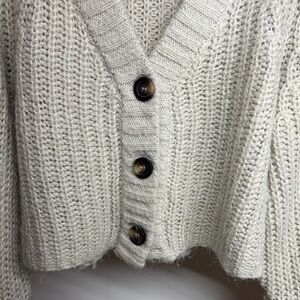 Saints & Hearts Cozy Light Grey Button-Up Deep V Cropped Sweater size Medium