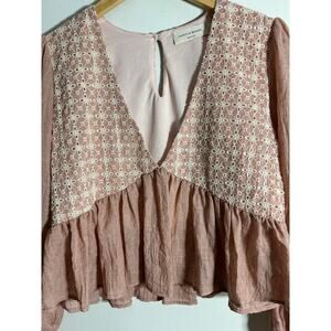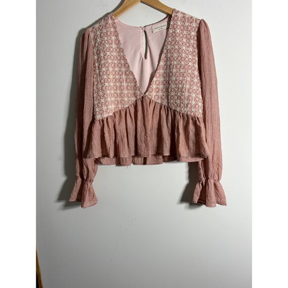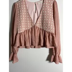 Saints & Hearts Crop Eyelet Blouse Bohemian Gauze Fabric Mixed Media rose pink Medium