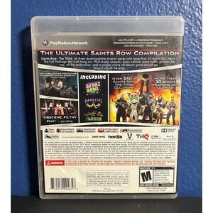 This is the Saints Row: The Third - The Full Package for the PlayStation 3. The game includes the original disc, case, and cover art, all in excellent condition. The “Full Package” edition includes all three DLC mission packs and over 30 bonus weapons, vehicles, and outfits. Perfect for fans of over-the-top open-world action!