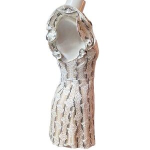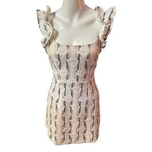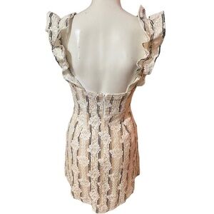 Saints + Secrets Annie Ruffle Shoulder Strap Lace Overlay Mini Dress S = Size 4