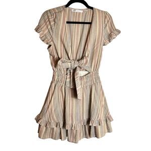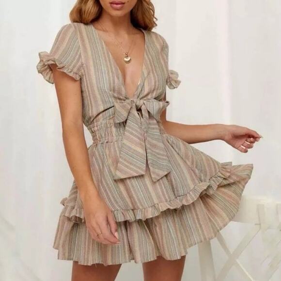 Saints + Secrets Anthea tie Front Layered Frill linen Dress Size S