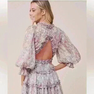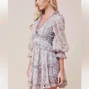 Saints & Secrets GREY ORANGE MULTI-COLOR FLORAL PRINT V-NECK RUFFLE DRESS Size M
