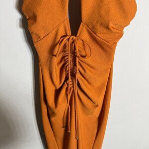 Saints + Secrets Halter Deep V Bodycon Dress Women's Small Rust Orange Vacation