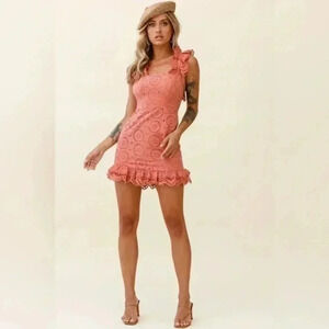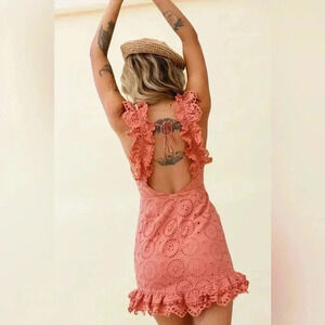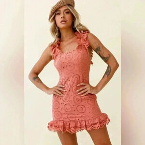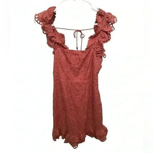 Saints + Secrets NWT XS EYELET EMBROIDERY RUFFLE SHOULDER DRESS ROSE