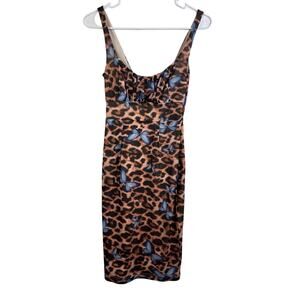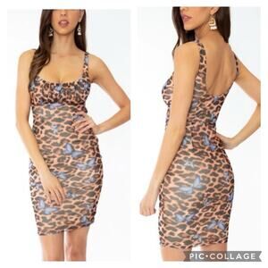Saints + Secrets New Leopard Butterfly Print Mesh Bodycon Mini Dress XS Summer
