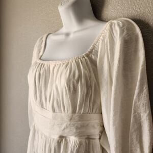 Saints + Secrets Puff Sleeve Open Back Bow White Ruffle Dress
