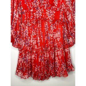 Saints & Secrets Red Deep V-Neck Ruffle Chiffon Floral OPen Back Mini Dress Medium