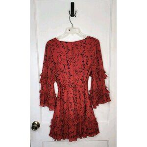 Saints + Secrets Red Floral Ruffle Mini Dress Size Medium