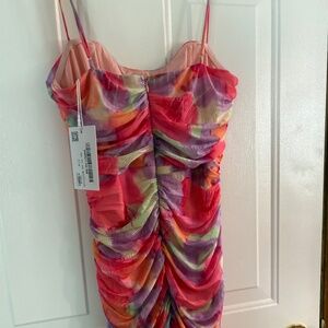Multicolored ruched formal short dress. Brand new dress with tags.