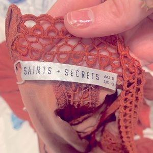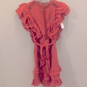 Burnt orange ruffle dress with cute tie and lace middle NEW!!! Never worn