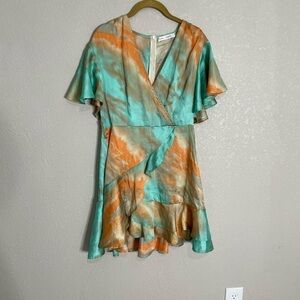 Saints + Secrets Toe Dye Orange Blue V Neck Dress Large