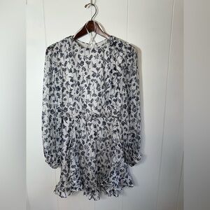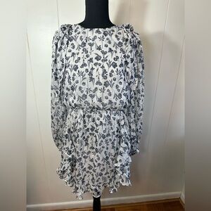 Saints + Secrets White & Black Floral Ruffle Boho Women’s Dress Size Medium