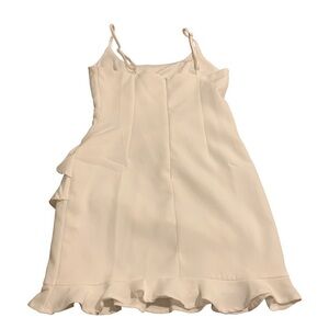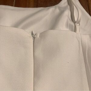 Saints + Secrets White Ruffled Strapless Bodycon Mini Dress Size Small. Approximate measurements armpit to armpit 15 1/2 inches length from armpit down 23 inches great preowned condition. With the exception of strap unattached in back see photo. Back zipper. Lined.