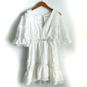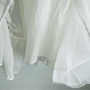 Saints + Secrets sheer embroidered ruffle style v-neck keyhole back sz S white