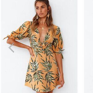 Saints + Secrets women's S Konoha botanical print boho mini dress w/ cutout EUC