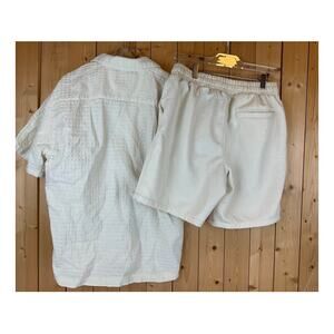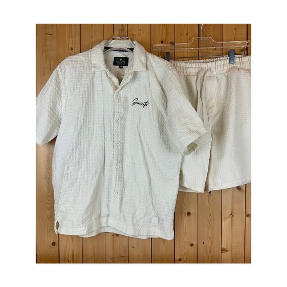 Saints Studio Men's Cream Short Set- Waffle/Rose detail, Medium