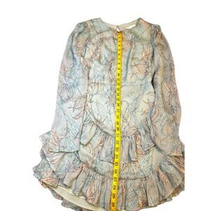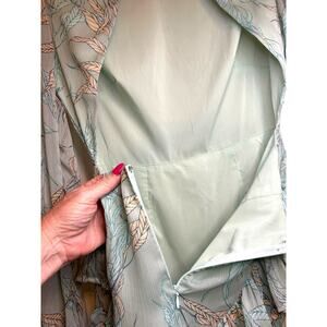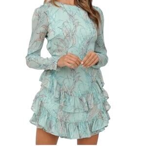 This fabulous dress from Saints and Secrets is just what you need this summer. It's mint green color and lightweight fabric make it a perfect choice. I features three rows of ruffles around the hem and an open back with a button closure at the back of the neck. Add some strappy sandals and you are set to go! This dress will be be quickly shipped with care from a smoke free and pet free environment. Please note, colors and measurements may vary slightly due to differences in lighting, position and screen resolution.