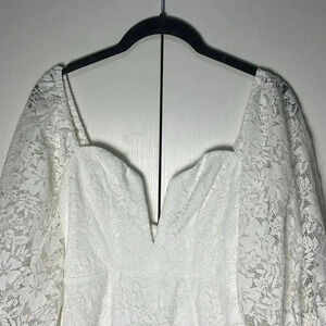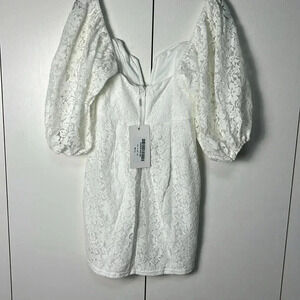 We are living for this super CUTE dress! Our Lucy Mini Dress is giving us With its short puff lace sleeves, plunge v-neckline, and tight bodice we just can't get enough! Perfect for bridal events, anniversaries, or a flirty date night teamed with heels and a clutch.