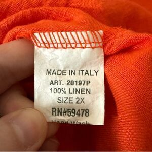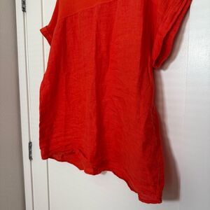 Saiph Lab Blouse Shirt Top Plus 2X Linen Knit Yoke Peasant Boho Solid Orange