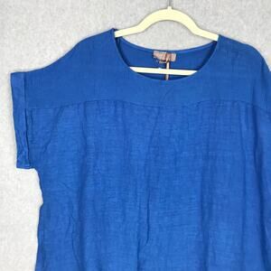 Saiph Lab Top Women 1X Blue Linen Cotton Blouse Shirt Oversize Lagenlook Texture
