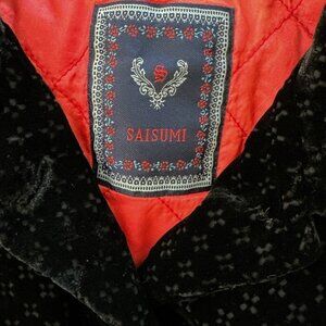 Saisumi Black Silk Velvet Burnout Patterned Winter Jacket Coat Size XL ?