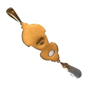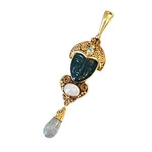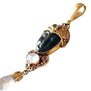 Vintage Sajen 18K Gold DROP PENDANT For Necklace Black Obsidian Goddess Face Moonstone Topaz Gemstones RARE - Excellent Condition!