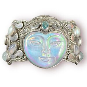 Sajen Carved Welo Opal Moon Cuff Bracelet "Keeper of the Moon" Vintage RARE