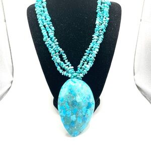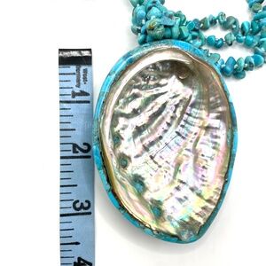 Sajen NWT Multi Strand Turquoise Large Mosaic Abalone Shell Pendant Necklace
