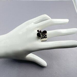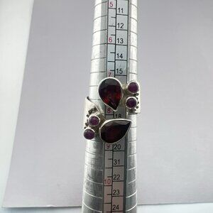 Sajen Ring Sterling Silver Garnet Bypass Adjustable 925 Red Pink Size 7 - 10
