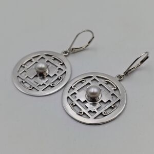 Sajen Sterling Silver 925 Freshwater Pearl Oriental Pattern Dangle Earrings
