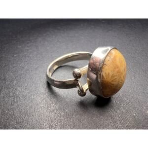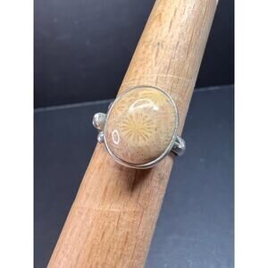 Beautiful fossil coral stone in an authentic 925 sterling silver setting. Signed by Sajen. Measures a size 7. Total weight is 6.72 grams.