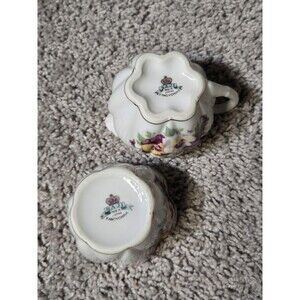 Saji fancy China Cream and Sugar Containers Pansy Floral set white gold