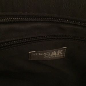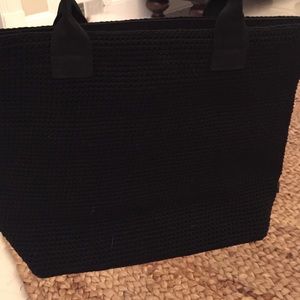 Crochet black front zipper Sak tote. This handbag is almost new and an excellent classic black bag. The front zipper is a great touch.