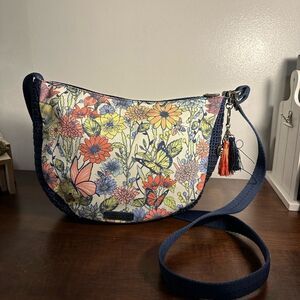 Sak Roots Crossbody Purse Knit Edges Floral Butterfly Garden Print Shoulder Bag