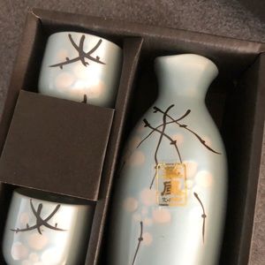 Beautiful sake set! Bottle and two shots serve your sake warm or cold in this beautiful bottle and shot glasses